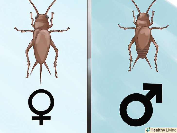 Купуйте 50 або більше цвіркунів. переконайтеся, що у вас достатньо цвіркунів, щоб прогодувати вашого вихованця, а на розведення залишалося ще 30-50 штук. Важливо, щоб в колонії були і самці, і самки, але переважання самок більш бажано.- Самки цвіркунів мають ззаду три довгих вусика, один з яких (середній) є яйцекладом, яким самки відкладають яйця в грунт. Також у самок цвіркунів є повністю розвинені крила.
