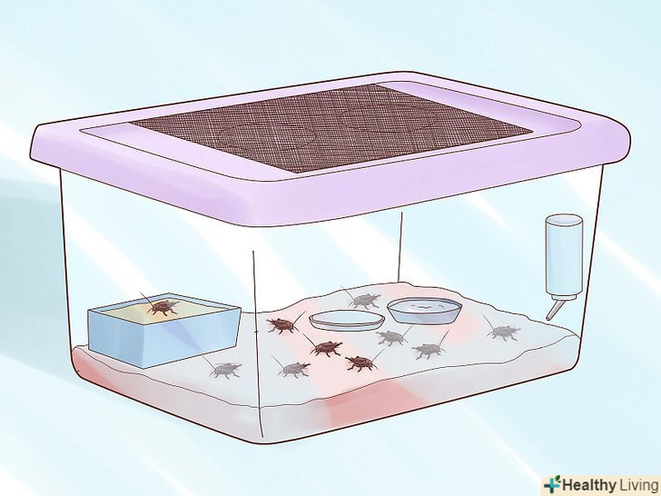 Насипте на дно контейнера вермикуліт. насипте 2,5-7,5 см. вермикуліту на дно вашого ящика. Це забезпечить цвіркунам субстрат, по якому вони зможуть повзати, охоронить ємність від розвитку бактерій і зменшить неприємний запах. Якщо у вас велика колонія, вермикуліт треба буде міняти кожні 1-6 місяців, тому запасіться їм про запас.