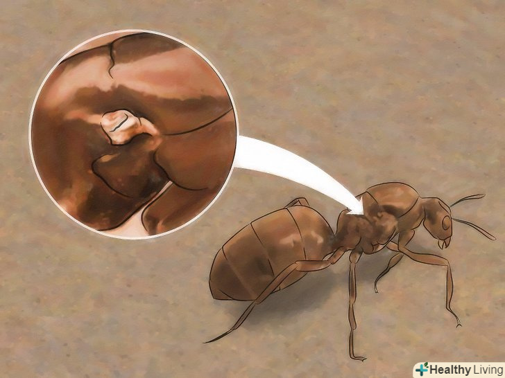 Зверніть увагу на ознаки того, що мураха недавно скинув крила. у певні періоди свого життя мурашині матки скидають крила. Уважно придивившись до середньої частини тіла комахи, ви, можливо, побачите з боків маленькі горбки. Вони свідчать про те, що у даного мурашки були крила, що росли з цих горбків. Ці виступи з боків тіла допомагають визначити матку після того, як вона скинула крила. [5]