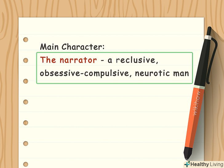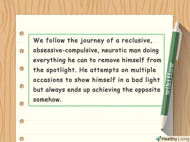 Сконцентруйтеся на описі особливостей характеру головного персонажа.у більшості оповідань зустрічається один або максимум два головних героя. Постарайтеся придумати такого головного героя, у якого є чітка мета або прагнення, але який при цьому сповнений протиріч. Не потрібно зупиняти свій вибір на явно хорошому або поганому персонажі. Наділіть свого героя цікавими рисами і почуттями, щоб його образ був досить складним і гармонійним.[2]- В якості прототипів головного героя можна використовувати реальних людей, яких Ви знаєте по життю. Або можна поспостерігати за незнайомцями в громадських місцях і взяти їх за основу для свого головного героя.