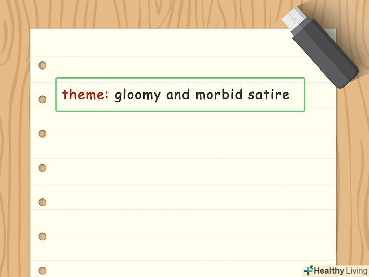 Подумайте про конкретну тему.багато коротких оповідань будуються на конкретній темі і розкривають її з точки зору автора або головного персонажа. Для розповіді можна взяти одну з таких великих тем, як любов, мрія або втрата, і розкрити її з точки зору свого головного персонажа.[5]- Також можна сконцентруватися на більш вузькій темі, наприклад, любов між братами і сестрами, прагнення до дружби або втрата батьків.