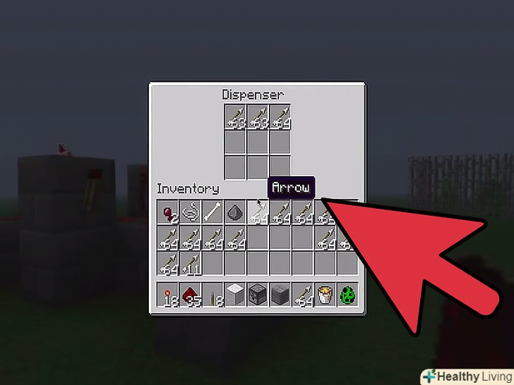 Поставте видає механізм, пил червоного каменю за ним, і 2 блоки ззаду.