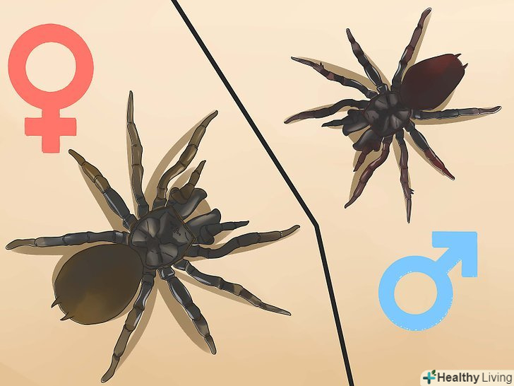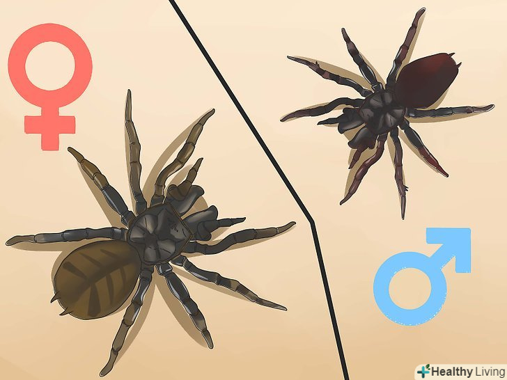 Розпізнайте самку воронкового павука, порівнявши її відмінні риси з чоловічою особиною.- Погляньте на її очі. Вони будуть дуже малі і розташовані близько один до одного. Більшість видів мають два паралельних ряди очей (по 4 в кожному ряді), але лише у небагатьох видів очі розташовані в вигнутих рядах. Деякі особини і зовсім не мають очей!