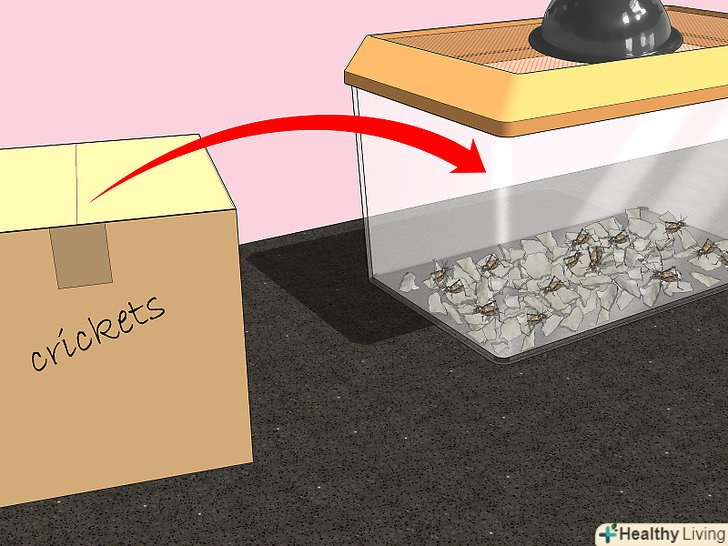 Помістіть нових цвіркунів в їх середовище проживання, як тільки ви повернетеся з ними додому. цвіркуни не можуть існувати в маленькому обмеженому просторі. Не тримайте цвіркунів у транспортувальній коробці занадто довго, інакше вони можуть померти. Помістіть їх у чисту ємність, як тільки ви повернетеся додому. [6]- Переконайтеся, що у верхній частині транспортувальної коробки є отвори для повітря.
