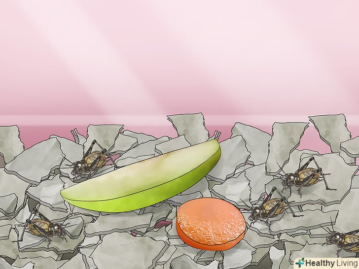Слідкуйте за тим, щоб в контейнері завжди були їжа і рідина. цвіркуни повинні мати постійний доступ до джерела їжі і рідини, тому подбайте про це. Крім того, стежте за свіжістю їжі — міняйте її раз на тиждень. Якщо ви використовуєте фрукти, міняйте їх кожен день, щоб вони не створили гнильну хвороботворну середу в ємності з цвіркунами. [9]- Цвіркуни не переїдають, тому не переживайте про це.