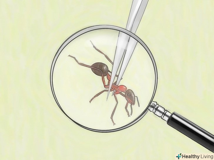 Знайдіть збільшувальне скло або мікроскоп. для того, щоб точно визначити вид мурашки, необхідно ретельно оглянути його крихітні частини тіла. Потужності лінзи в 10-15 крат повинно бути достатньо, але якщо у вас є мікроскоп на малому збільшенні, то ви можете ним скористатися. [4]- Пінцет дуже вам допоможе при дослідженні, так як їм можна відрегулювати положення мурашки.
