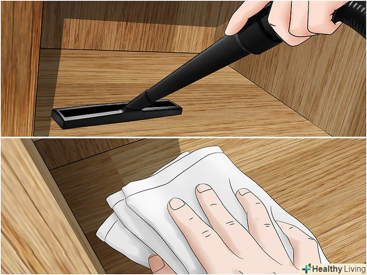 Пропилососьте і вимийте комору. приберіть всі продукти з полиць комори і ретельно пропилососьте полки, щоб на них не було залишків круп і борошна. Візьміть ганчірочку для миття посуду, змочіть в мильному розчині і вимийте полки і подібні поверхні, на яких є залишки їжі. Якщо ви знайшли довгоносиків в інших кімнатах свого будинку, ретельно пропилососьте ці приміщення. [2]- Відразу після того, як ви пропилососити забруднені поверхні, очистіть пилосос від сміття на вулиці, щоб довгоносики не залишалися у відрі, яким Ви користуєтеся на кухні.