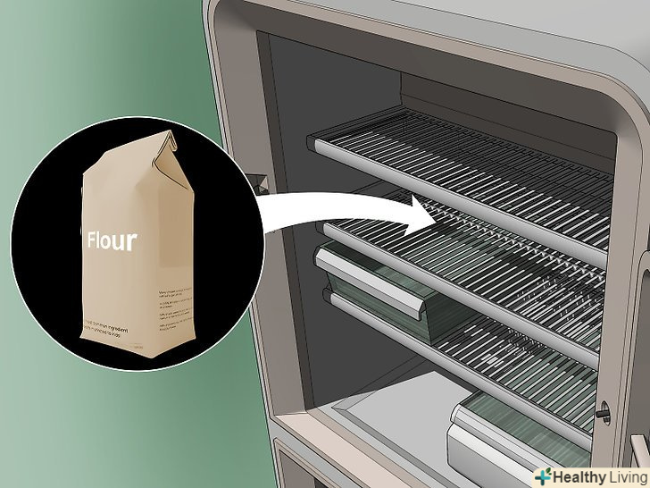 Заморозьте борошно. як тільки ви принесете борошно додому, запечатайте її в пакет для заморожування і покладіть в морозильник мінімум на один тиждень. Процес заморожування знищить будь-які яйця і довгоносиків, якщо вони є в борошні. Потім ви можете зберігати борошно як звичайно, в герметичному контейнері в коморі. Крім того, можна залишити борошно в морозильній камері і діставати її тільки тоді, коли вона вам знадобиться. [5]