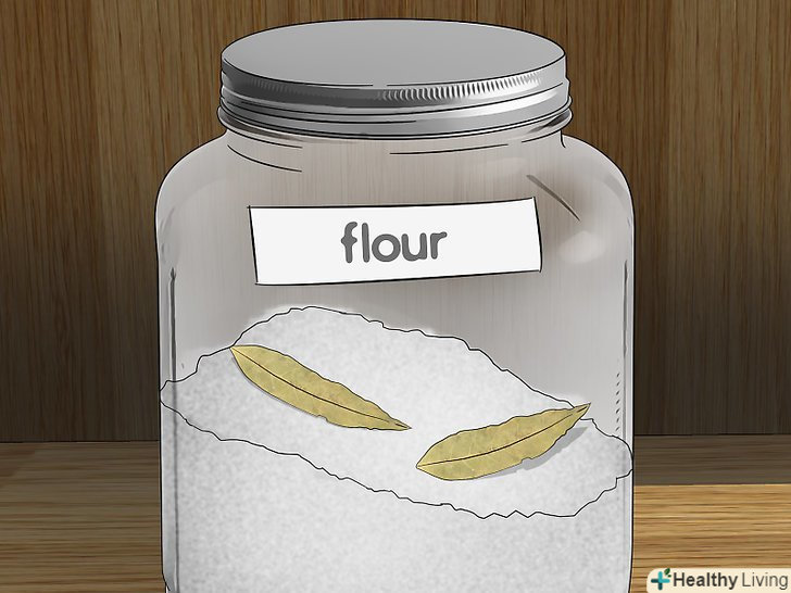 Помістіть свіжий лавровий лист в борошно. Візьміть свіжий лавровий лист і помістіть його в контейнер або пакет з борошном. Деякі вважають, що лавровий лист запобігає зараженню продуктів довгоносиками. Замінюйте старий лист новим раз в кілька місяців або коли перестанете відчувати його запах.- Придбати свіжі лаврове листя можна у відділі свіжих трав.