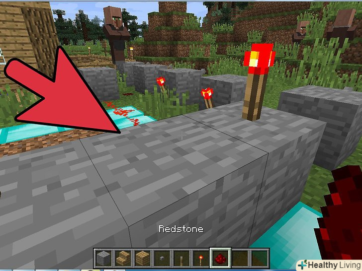 - На Середньому блоці під проводом поставте ще 1 Червоний факел, він буде відправляти сигнал для відкриття дверей.