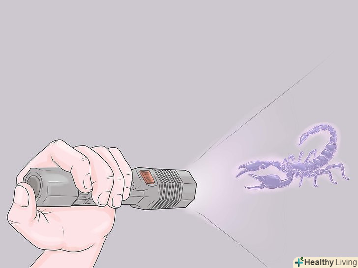 Шукайте скорпіонів вночі. Якщо у вас в будинку завелися Скорпіони, ви можете позбутися від них. Просто методично вбиваючи їх ночами. Це час, коли вони найбільш активні. У будівельному магазині купіть лампочку ультрафіолету і вставте її в ліхтарик. Посвітіть ліхтариком на стіни, кути, уздовж плінтуса і в інші місця, де можуть бути Скорпіони. Під світлом ультрафіолету панцир Скорпіона буде відблискувати.- Не забудьте також перевірити зовнішні стіни. Скорпіони можуть також ховатися між каменів у дворі та інших місцях, які можуть служити притулком.