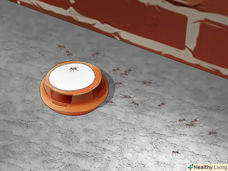 Розставте в будинку приманки для мурах. Приманка приверне мурах, поле чого вони в ній застрягнуть і помруть. Приманки бувають у вигляді гелю, гранул або ящика. Більшість приманок діляться ще на два види: з основою з цукру або білка/жиру. [9]- Як правило, Тип приманки не має значення, але ми рекомендуємо використовувати приманку з одночасно цукрової і білкової основою.