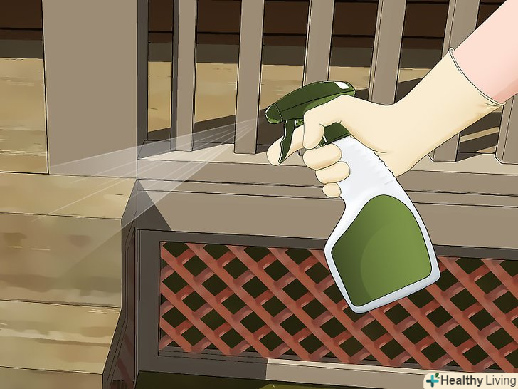 Розпиліть інсектицид біля точок проникнення, щоб відлякати мурах. розпиліть інсектицид там, де помітите мурах, щоб вони не повернулися. Тримайте пульверизатор приблизно в 10 сантиметрах від поверхні, що розпилюється. Це повинно захистити будинок від більшої частини мурах. [10]- Розпиліть достатньо інсектициду, щоб лише злегка зволожити поверхню.
