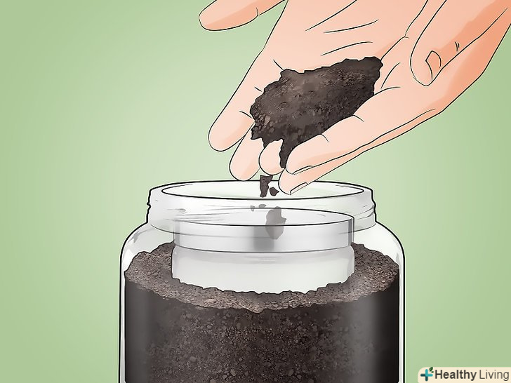 Приготуйте суміш з грунту і піску. мурахи повинні жити в зволоженому середовищі, яка дозволить їм копати і рити тунелі. Якщо ви хочете зібрати мурах у себе у дворі або на найближчій місцевості, найкраще використовувати ту ж землю, щоб вони жили в звичній для них середовищі існування. Нарийте достатньо землі, щоб заповнити простір у банку. Використовуйте вилку або власні пальці, щоб розпушити землю. Тепер змішайте 2 частини Землі з 1 частиною піску. Якщо земля спочатку пісочна, піску слід додати менше.- Якщо ви хочете знайти мурах далеко від дому, земля вже не підійде. Ви можете купити пісок і удобрений грунт у відділі садівництва і змішати їх.