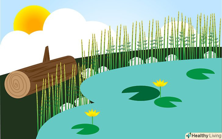 Нехай в ставку для бабок росте висока трава. це збільшить кількість місць для полювання, відпочинку і спарювання бабок.- Подумайте про те, щоб засадити заплавними рослинами або польовими квітами ділянку землі навколо ставка для бабок.