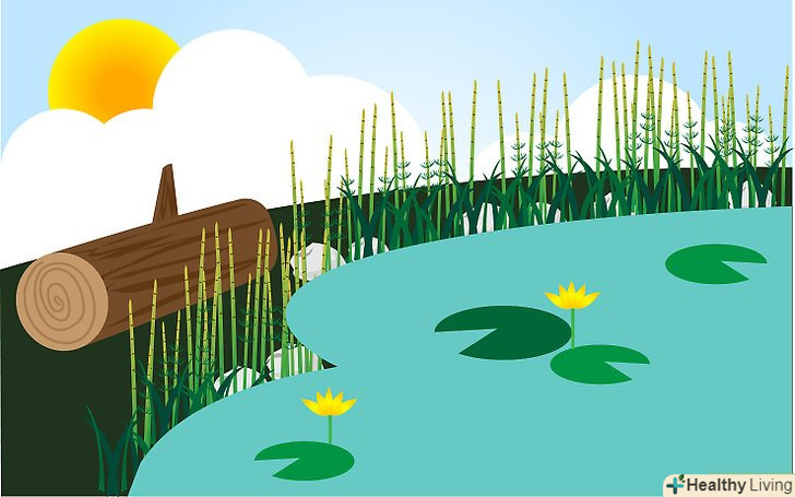 Розмістіть яскраві камені по краях ставка. ці камені забезпечать бабкам можливість грітися на сонечку.- Для залучення бабок додайте глинисті ділянки.
