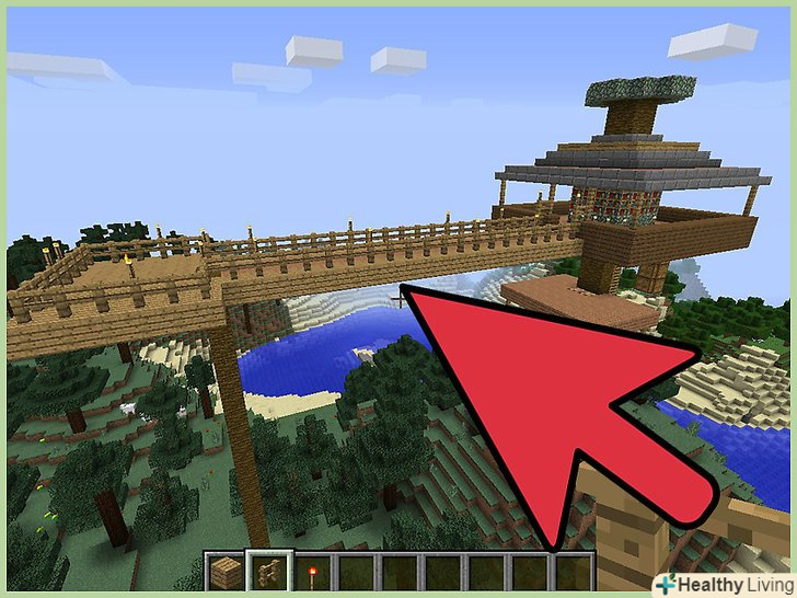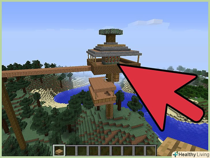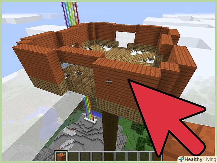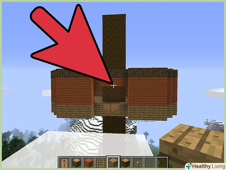 На верхівці колони ви побудуєте будиночок з дощок.тільки спочатку зробіть широку платформу. Будуючи будиночок, не забудьте про двері.