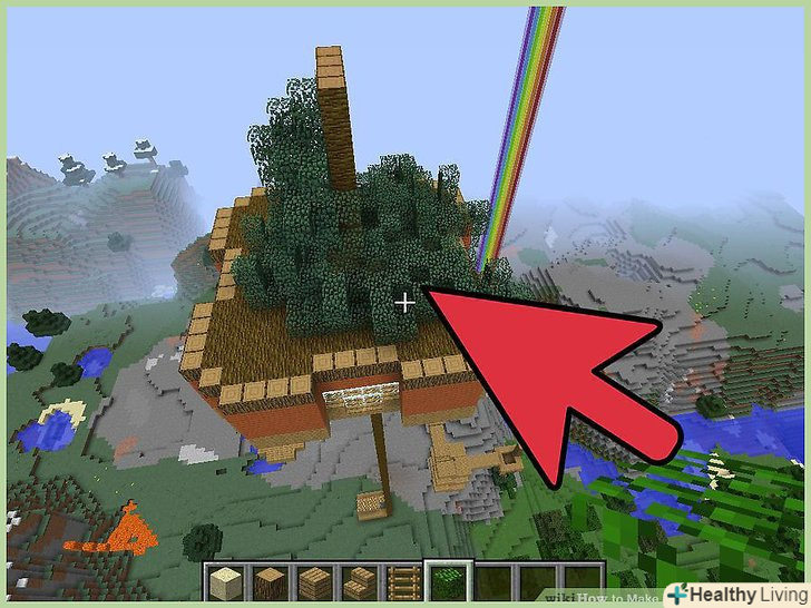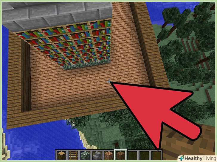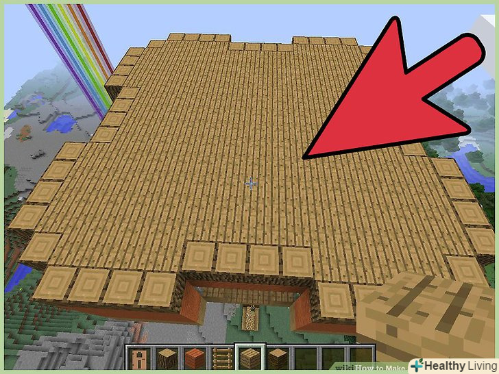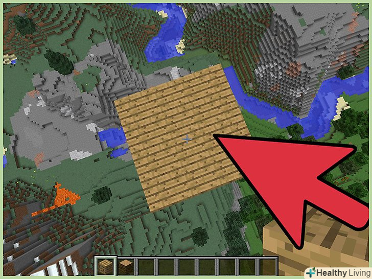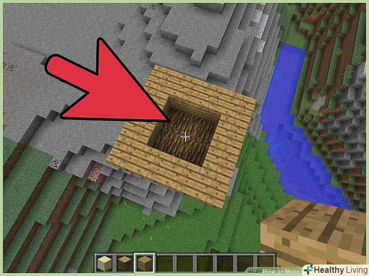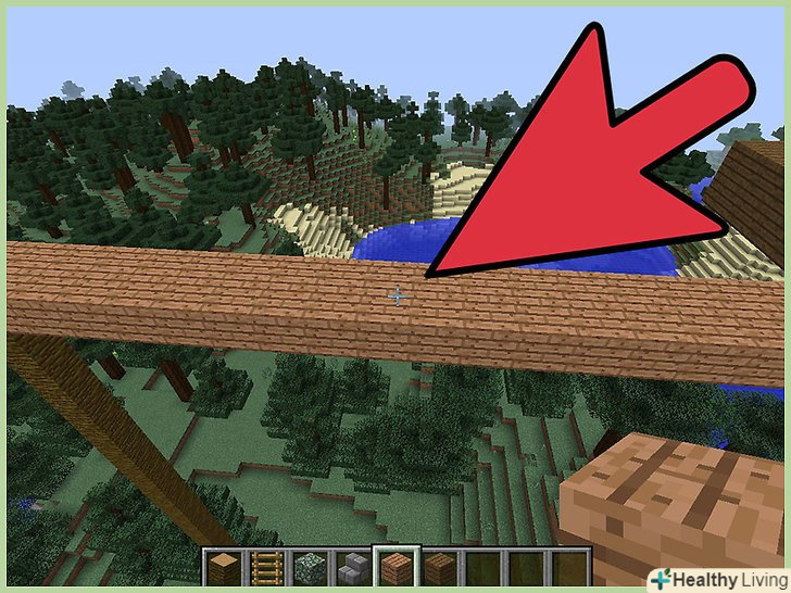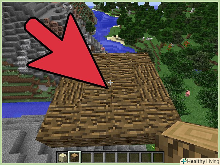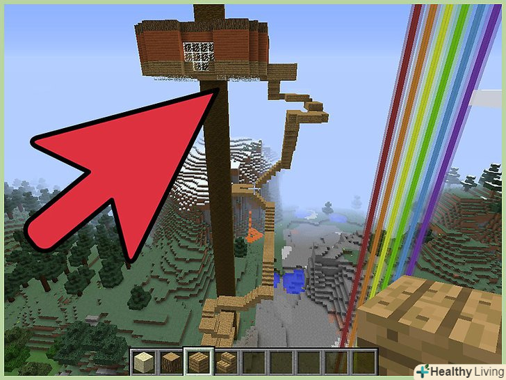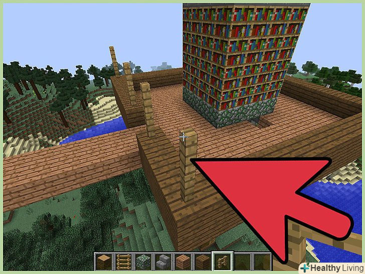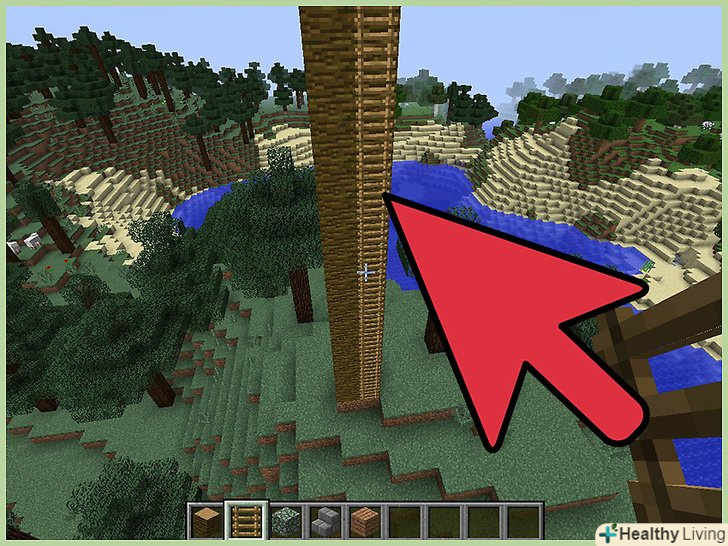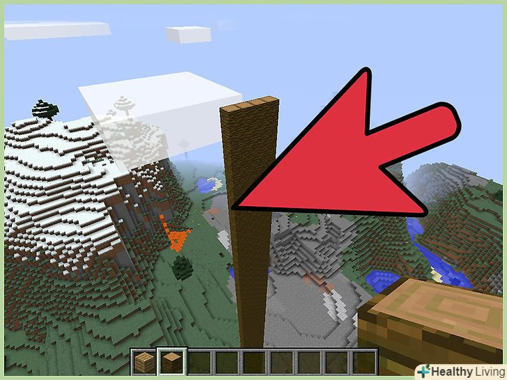 Зробіть з деревини, яку Ви ще не використовували на дошки, широку і високу порожнисту колону.будуйте її вгору, на висоту приблизно 10 блоків.