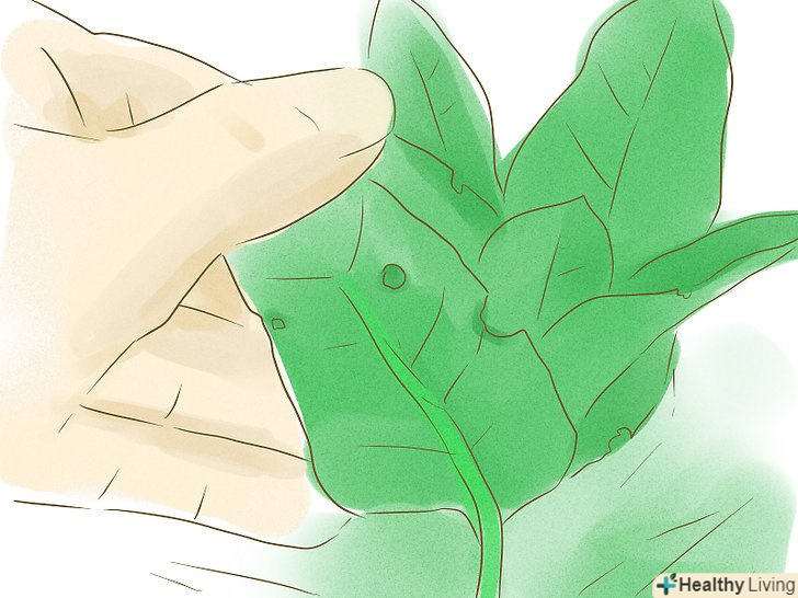 Огляньте листя на наявність отворів в центрі або по краях. гусениці їдять листя і часто залишають круглі отвори надкусів.- Подивіться на нижню частину листя з отворами. У більшості випадків, гусениці будуть ховатися і є листя з нижньої їх частини. [5]