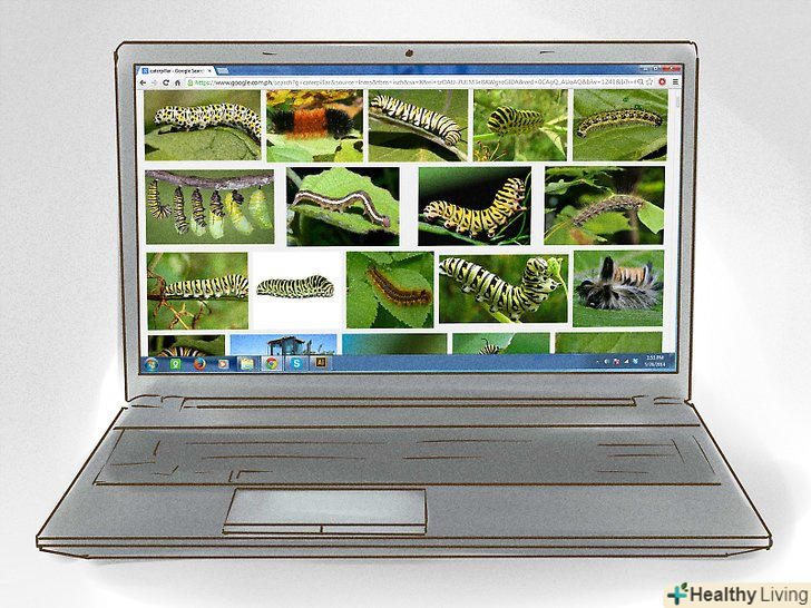 Вивчіть фотографії гусениць, щоб ви знали, що шукати, і як гусениць ідентифікувати.- Гусениці виглядають по-різному, в залежності від їх виду. Вони можуть бути волохатими, зеленими, яскравими.