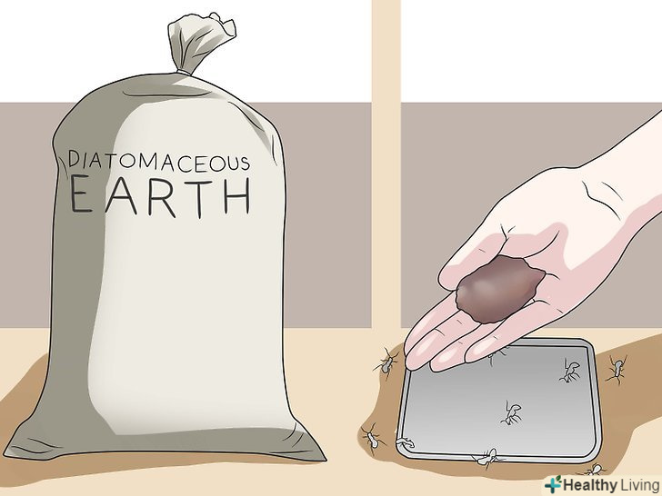 Використовуйте діатомову землю. ця речовина є натуральним і абсолютно безпечним для людей і домашніх тварин, але воно ефективно бореться з мурахами та іншими повзаючими тварюками. Воно складається з розламаних викопних шматочків, які розрізають мурах навпіл, коли вони по них проходять. Насипте діатомову землю в кутах, під раковиною, на підвіконнях і в інших місцях, де ви часто бачите мурах.- Щотижня або два прибирайте діатомову землю за допомогою пилососа і насипайте новий шар.