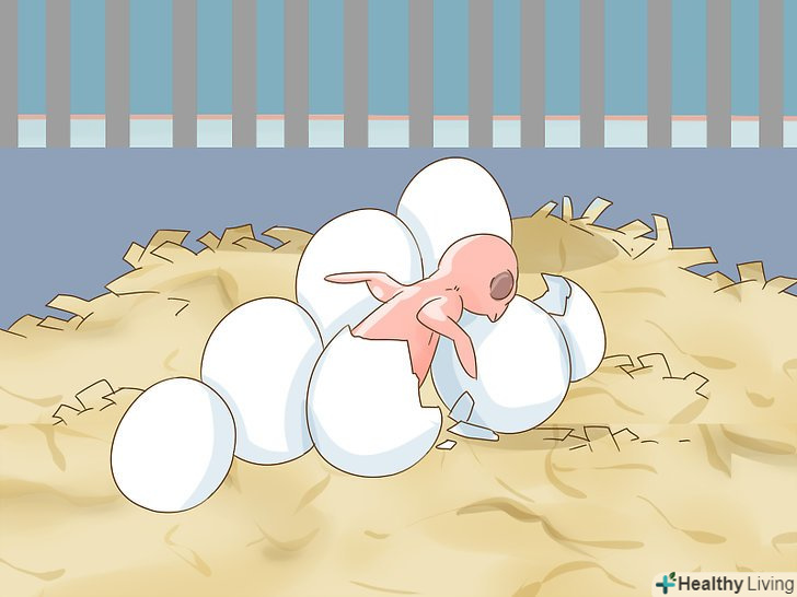 Дочекайтеся, коли з яєць вилупляться пташенята. Через 21-26 днів насиджування яєць можуть почати вилуплюватися пташенята. Ні в якому разі не беріть в руки пташенят в перші 6-8 тижнів їх життя. [38]- Самка буде вигодовувати малюків протягом 6-8 тижнів живильним кормом, який ви їй надасте. [39]