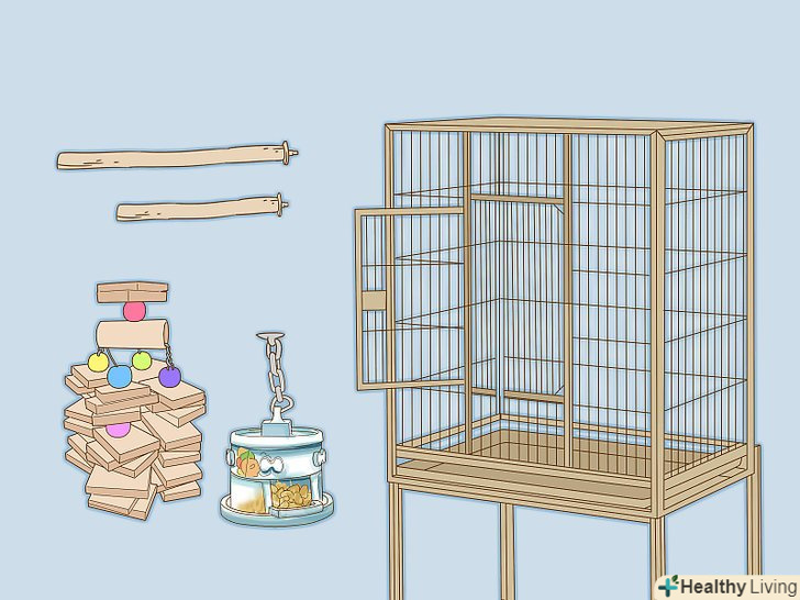 - Розмістіть всередині клітини жердочки різних розмірів, а також іграшки, щоб птахи були щасливі і могли розважитися. [11] уникайте застосування стандартних дерев'яних жердинок однакового діаметру.