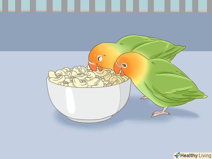 Забезпечте птахів якісним харчуванням. нерозлучники, відібрані для розведення, потребують досить поживної їжі через той стрес, якому піддається організм птахів. Уникайте годування нерозлучників просто насінням, так як вони не містять в собі необхідного птахам і пташенятам кількості поживних речовин. [24] наприклад, доповнити зерновий корм для нерозлучників можна наступними продуктами:- Вареними макаронами;