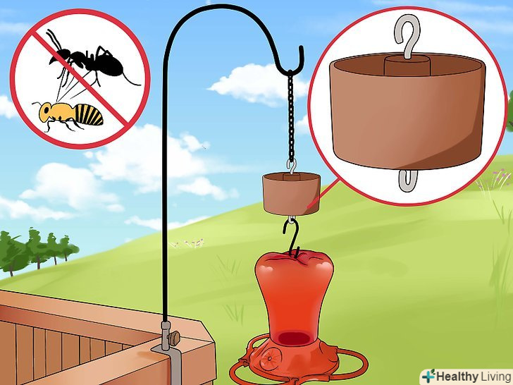 Захистіться від комах. солодкий нектар для люблячих його птахів дуже сильно приваблює комах, таких як мурахи або бджоли. Використання підвісний годівниці (а не закріплюється на вікні) може допомогти захиститися від комах, або можна купувати годівницю з вбудованим захистом від мурах, яка не дасть їм дістатися до нектару.- Будьте обережні з іншими методами боротьби з комахами, включаючи липкі стрічки і вазелін, так як при попаданні на пір'я птахів вони можуть завдати їм шкоди і знизити їх здатність до польоту.