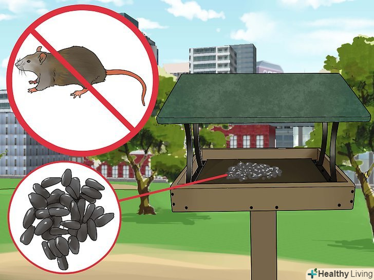 Позбавтеся від мишей і щурів. миші і щури нерідко залучаються розсипаним зерном, тому мінімізація кількості розсипаного зерна дозволить не допустити їх появи. З цією метою вибирайте для годівниці таке насіння, які птахи вашого регіону будуть із задоволенням швидко з'їдати (наприклад, насіння соняшнику), додайте знизу до годівниці піддон для уловлювання розсипаних насіння або годуєте птахів зовсім іншим кормом.- Своєчасно прибирайте засохлі і більш не привабливі для птахів залишки корму. Вони можуть все ще бути смачним частуванням для шкідників. [11]