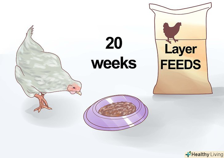 Годуйте ваших несучок спеціальними кормами для несучих порід з 20 тижня. ви можете використовувати загальноцелеві корми; однак корми для несучок містять на 2% більше білка і мають підвищений вміст кальцію для кращого утворення шкаралупи. Вам знадобиться від 18 до 24 фунтів (8-11 кг) корму на тиждень на утримання 10 птахів. [4]- Можна замовити корм для несучок в гранулах, в крихті або у формі мішанки.