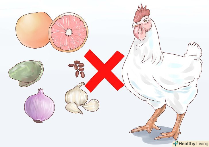 Не годуйте курчат цитрусовими, солоною їжею, ревенем, шоколадом, цибулею, часником, відходами з газонокосарки, сирими бобами, шкірками і кісточками авокадо, сирими яйцями, солодощами або сирими картопляними очищеннями. все це токсично для птиці. [5]