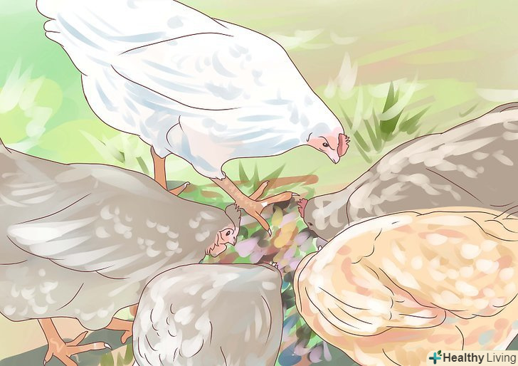 Надайте вашим курчатам можливість харчуватися підніжним кормом. газони з травою і молодими, ніжними рослинами можуть збагатити раціон. Проте, газони, оброблені пестицидами або засіяні тільки одним видом трави, не можуть бути джерелом різноманітного харчування. [6]