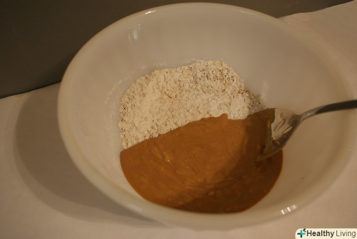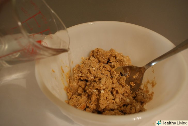 Дайте арахісовому маслу і жиру/салу охолонути, потім змішайте все з 4 чашками кукурудзяної або вівсяної муки.
