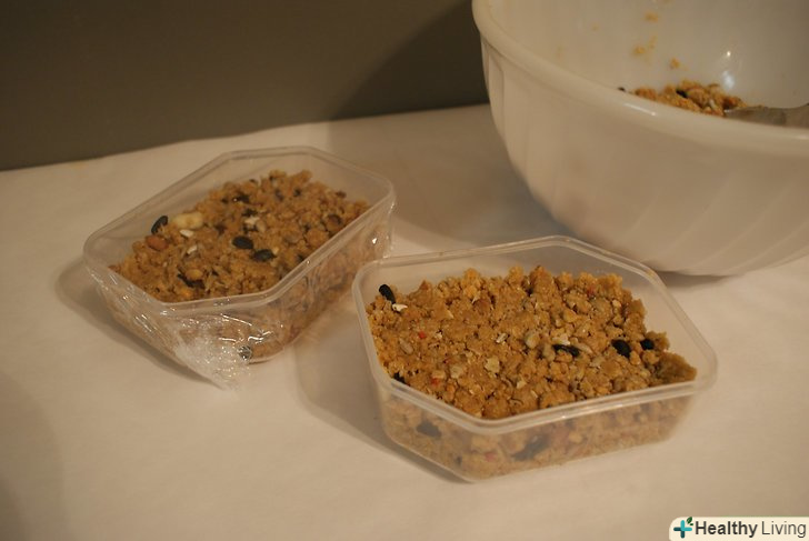 Використовуйте квадратні контейнери розміром трохи менше, ніж розмір годівниці з жиром. влийте туди суміш і накрийте харчовою поліетиленовою плівкою.