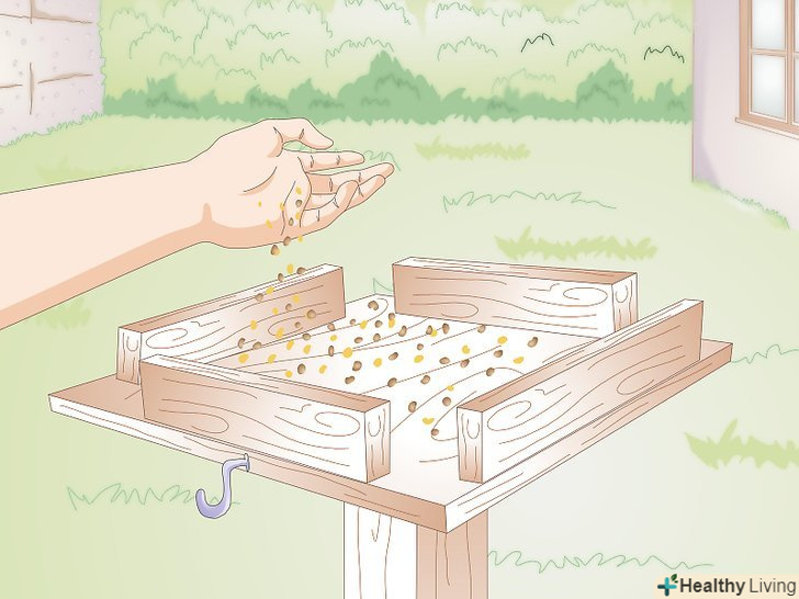 Помістіть вийшла годівницю на садовий столик або інше піднесення, розташоване у дворі. насипте в годівницю зерно. Помістіть вийшла годівницю на садовий столик або інше піднесення, розташоване у дворі. насипте в годівницю зерно.