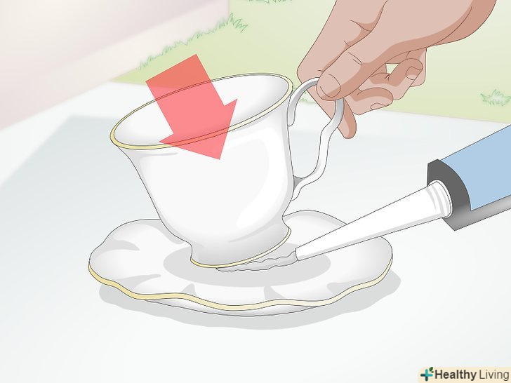 Склейте чашку і блюдце разом. використовуйте для цього звичайну замазку. Зачекайте, поки замазка висохне. Склейте чашку і блюдце разом. використовуйте для цього звичайну замазку. Зачекайте, поки замазка висохне.