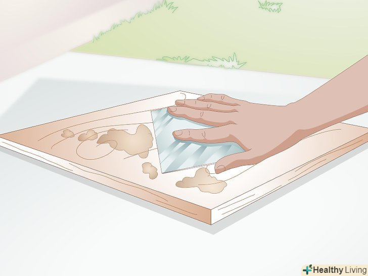 Якщо у вас немає готових шматків дерева, виріжте їх. обробіть столик і бічні планки наждачним папером, видаливши нерівності і тріщини, в яких зібратися старе зерно, що служить їжею для шкідливих бактерій. Якщо у вас немає готових шматків дерева, виріжте їх. обробіть столик і бічні планки наждачним папером, видаливши нерівності і тріщини, в яких зібратися старе зерно, що служить їжею для шкідливих бактерій.
