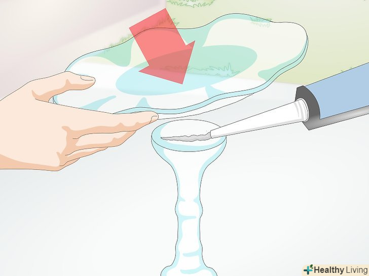 Досягнувши стійкої конфігурації на попередньому кроці, склейте предмети разом. приклеївши вазу або кубок до однієї страви, почекайте, поки клей висохне, і лише потім приклеюйте другу страву. Досягнувши стійкої конфігурації на попередньому кроці, склейте предмети разом. приклеївши вазу або кубок до однієї страви, почекайте, поки клей висохне, і лише потім приклеюйте другу страву.