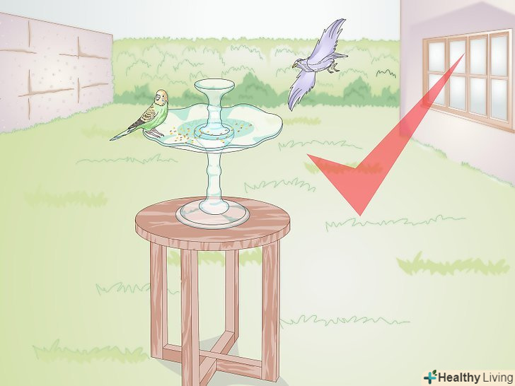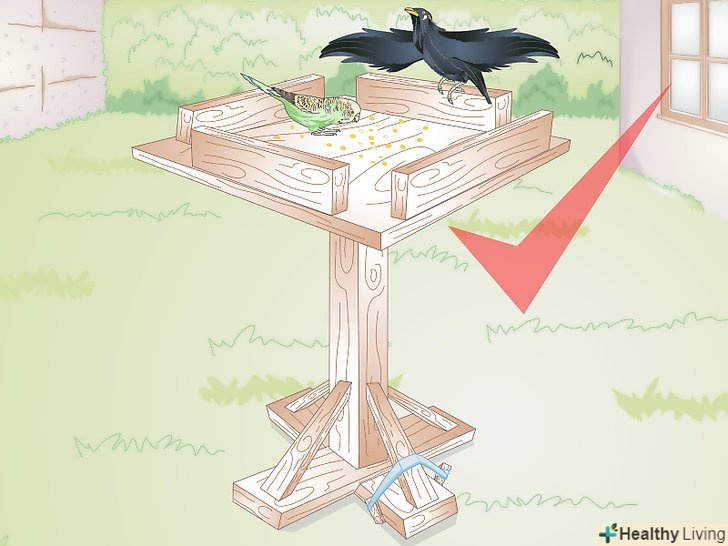 Переконайтеся, що годівниця твердо стоїть на землі і не перекинеться, коли на неї всядуться птиці. при бажанні можете спорудити над столиком дах або прикрутити до країв столика гачки для розвішування на них пластикових пляшок із зерном (стежте, щоб вони врівноважували один одного і не перекошували годівницю). Переконайтеся, що годівниця твердо стоїть на землі і не перекинеться, коли на неї всядуться птиці. при бажанні можете спорудити над столиком дах або прикрутити до країв столика гачки для розвішування на них пластикових пляшок із зерном (стежте, щоб вони врівноважували один одного і не перекошували годівницю).