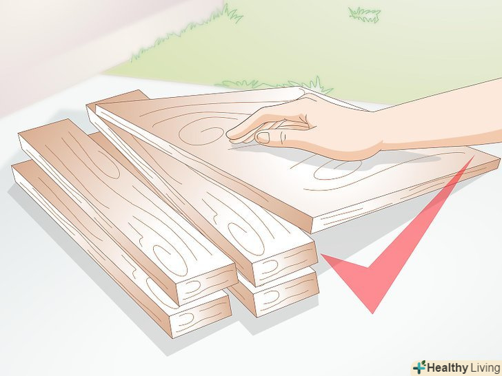 Підберіть матеріал для годівниці. можна взяти як старі, так і свіжі дошки, аби вони годилися для використання на відкритому повітрі і не були пофарбовані чимось, що може виявитися токсичним для птахів. Виберіть розмір годівниці: вона не повинна бути занадто маленькою, щоб птахи не сварилися один з одним через доступ до їжі. Для простої дерев'яної годівниці вам знадобиться: Підберіть матеріал для годівниці. можна взяти як старі, так і свіжі дошки, аби вони годилися для використання на відкритому повітрі і не були пофарбовані чимось, що може виявитися токсичним для птахів. Виберіть розмір годівниці: вона не повинна бути занадто маленькою, щоб птахи не сварилися один з одним через доступ до їжі. Для простої дерев'яної годівниці вам знадобиться:- 1 дошка розміром близько 30 x 50 см (12 x 20 дюймів) (наведено приблизний розмір), товщиною приблизно 0,5-1 см (1/2 дюйма) для столика