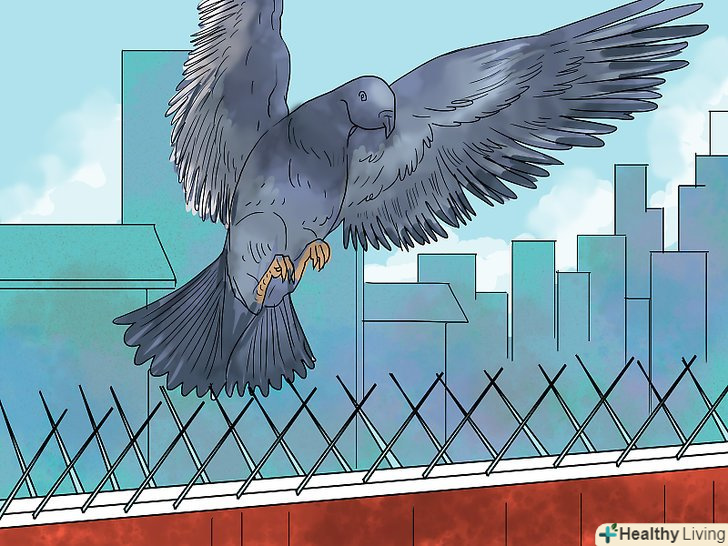 Придбайте колючки для птахів. це дротяні стрічки з невеликими шипами, які перешкоджають скупченню і сідала голубів. [3] Придбайте колючки для птахів. це дротяні стрічки з невеликими шипами, які перешкоджають скупченню і сідала голубів. [3]- Ці смуги шипів розміщуються по периметру великих будівель.
