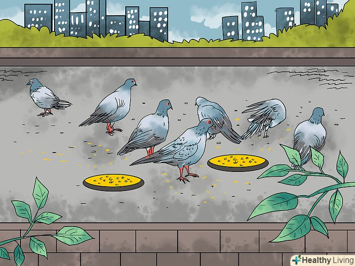 Голуби, напевно, так само поширені на міських вулицях, як і асфальт. По всьому світу вони розвивалися і адаптувалися до успішного життя в міських умовах. Як і щури, ці птахи підбирають сміття на звалищах і міських вулицях. Голуби - не дуже бажані сусіди, так як вони можуть бути переносниками багатьох захворювань, наприклад, сальмонели. А їх гнізда можуть залучати інших шкідників, наприклад, клопів або інших комах-переносників хвороб. [1] послід голубів також може бути небезпечним і його досить неприємно прибирати. Ця стаття розповість вам про те, як тримати голубів подалі від вашої власності, як ловити їх і як позбавлятися від них.