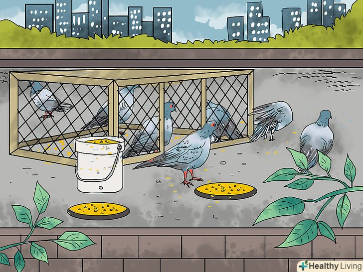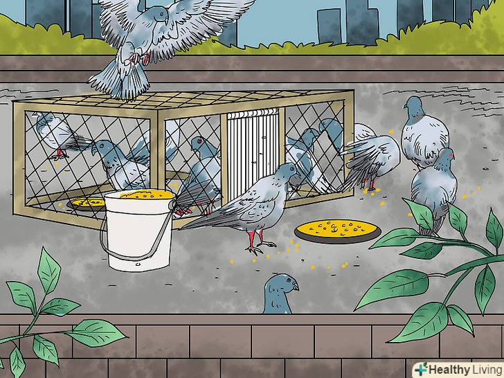 Придбайте пастку для голубів. [5] Придбайте пастку для голубів. [5]- Як правило, це велика клітина з одними дверима.
