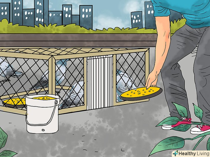 Поставте приманку. розташуйте її в тому місці, де ви плануєте поставити пастку. [6] Поставте приманку. розташуйте її в тому місці, де ви плануєте поставити пастку. [6]- Нехай голуби харчуються в цьому місці кілька днів.
