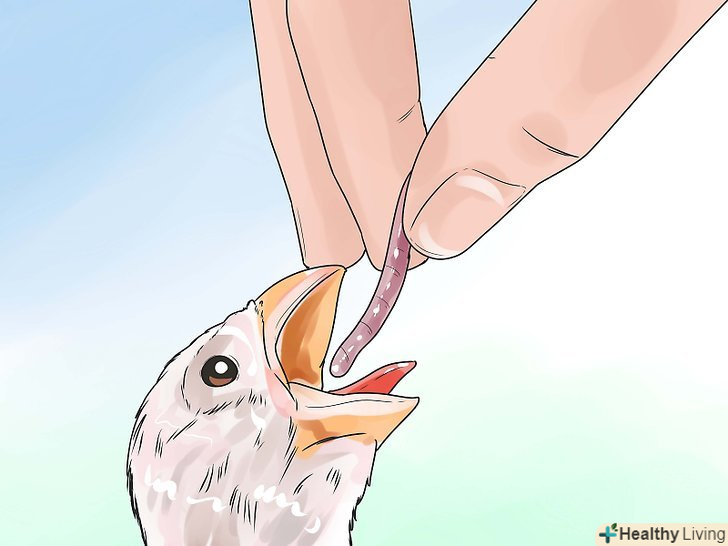 Складіть раціон для пташеня. дуже важливо, щоб пташеня отримував правильний корм. Деякі види птахів харчуються переважно фруктами і комахами, інших можна вигодувати тільки спеціальним кормом. Все буде залежати від виду птиці та її віку. Складіть раціон для пташеня. дуже важливо, щоб пташеня отримував правильний корм. Деякі види птахів харчуються переважно фруктами і комахами, інших можна вигодувати тільки спеціальним кормом. Все буде залежати від виду птиці та її віку.- Отже, ви визначили, до якого виду відноситься пташеня. Якщо цей вид птахів харчується білковою їжею, пташеня можна годувати готовою сумішшю для пташенят, змішаної з борошняними або земляними хробаками. Якщо пташеня відноситься до виду, який харчується фруктами, то крім суміші для пташенят йому можна давати розтерті свіжі ягоди місцевих сортів — наприклад, чорницю, ожину або малину.