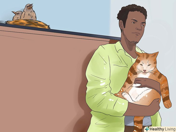 Залиште птицю в спокої, якщо їй явно не загрожують транспорт або хижаки. перебувати на землі — нормально для пташеня-слетка. Батьки продовжують годувати такого пташеня, навіть якщо він злетів з гнізда на землю. Якщо ж пташеняті і правда щось загрожує, помістіть його на дерево, подалі від небезпеки. На цій стадії розвитку пташеня вже вміє самостійно триматися на гілці дерева або чагарнику на деякій відстані від землі. Залиште птицю в спокої, якщо їй явно не загрожують транспорт або хижаки. перебувати на землі — нормально для пташеня-слетка. Батьки продовжують годувати такого пташеня, навіть якщо він злетів з гнізда на землю. Якщо ж пташеняті і правда щось загрожує, помістіть його на дерево, подалі від небезпеки. На цій стадії розвитку пташеня вже вміє самостійно триматися на гілці дерева або чагарнику на деякій відстані від землі.- Якщо пташеня залетів до вас у двір, не випускайте з дому кішку або собаку.