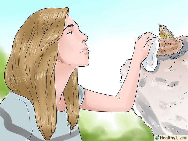 Віднесіть пташеня подалі від джерела небезпеки. [4] Якщо Ви знайшли пташеня на дорозі або поблизу є хижаки, віднесіть його в сторону на невелику відстань. Можна використовувати паперовий рушник, тканину або просто акуратно взяти птицю в долоні і віднести її в сторону. Постарайтеся торкатися до пташеняти дуже акуратно і недовго. Віднесіть пташеня подалі від джерела небезпеки. [4] Якщо Ви знайшли пташеня на дорозі або поблизу є хижаки, віднесіть його в сторону на невелику відстань. Можна використовувати паперовий рушник, тканину або просто акуратно взяти птицю в долоні і віднести її в сторону. Постарайтеся торкатися до пташеняти дуже акуратно і недовго.