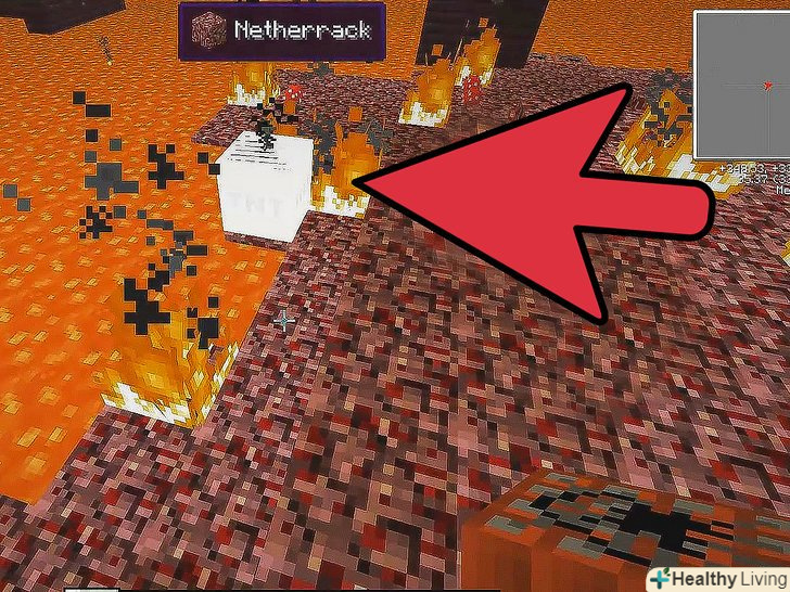 Можна використовувати для цього вогненна куля або лаву. Ось так:- Вогненна куля: вистрілите в ТНТ. Не промахніться.