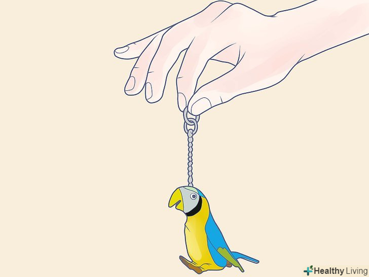 Давайте пташкам Іграшки і замінюйте їх щотижня. краще час від часу замінювати іграшки, а не давати всі іграшки відразу. Нові іграшки не дадуть пташці скучити. Деякі птахи бояться нових іграшок, тому повісьте іграшку за межами клітки на тиждень або два, щоб птах звикла до неї, а потім вже розміщуйте її в клітці.